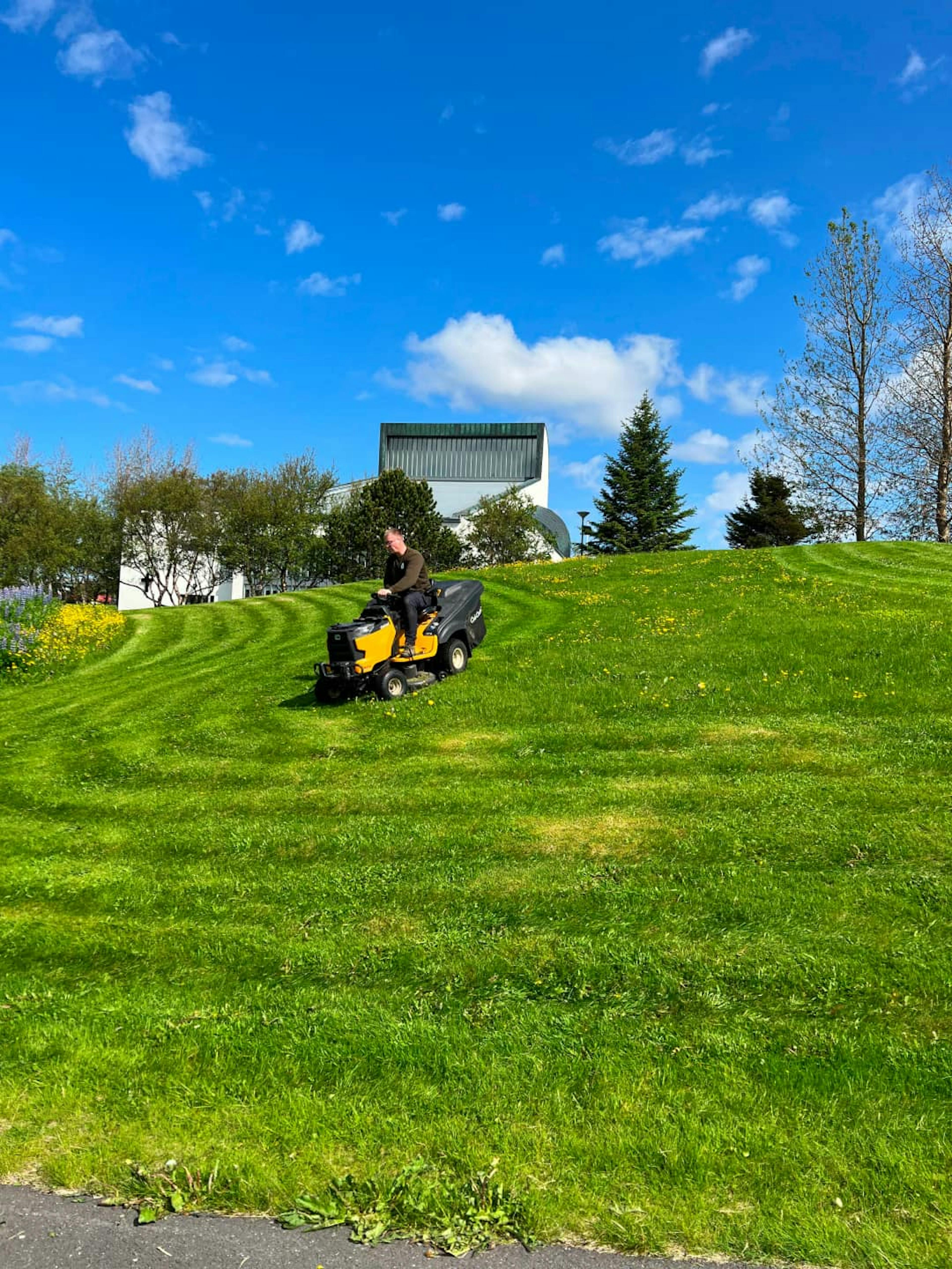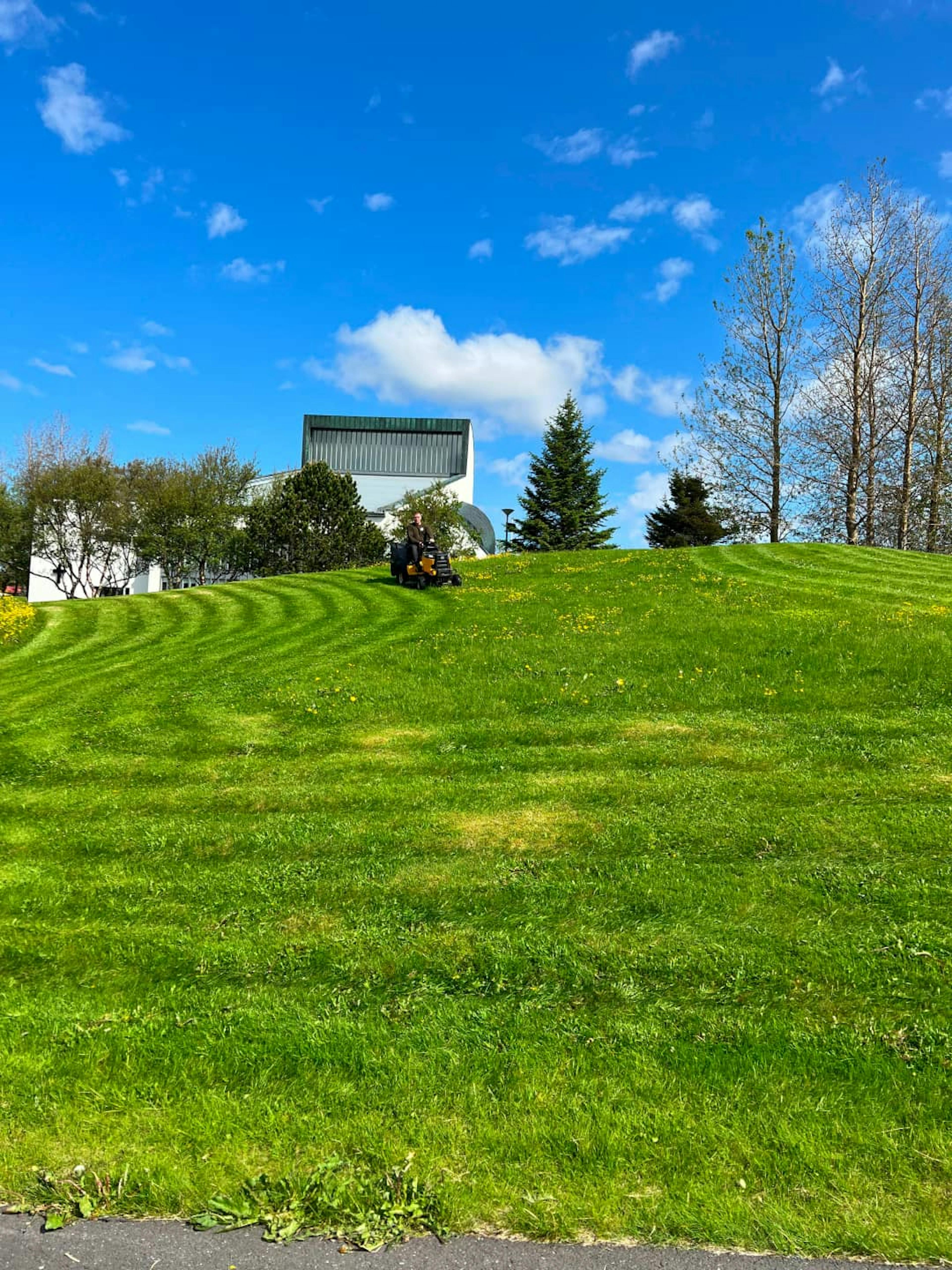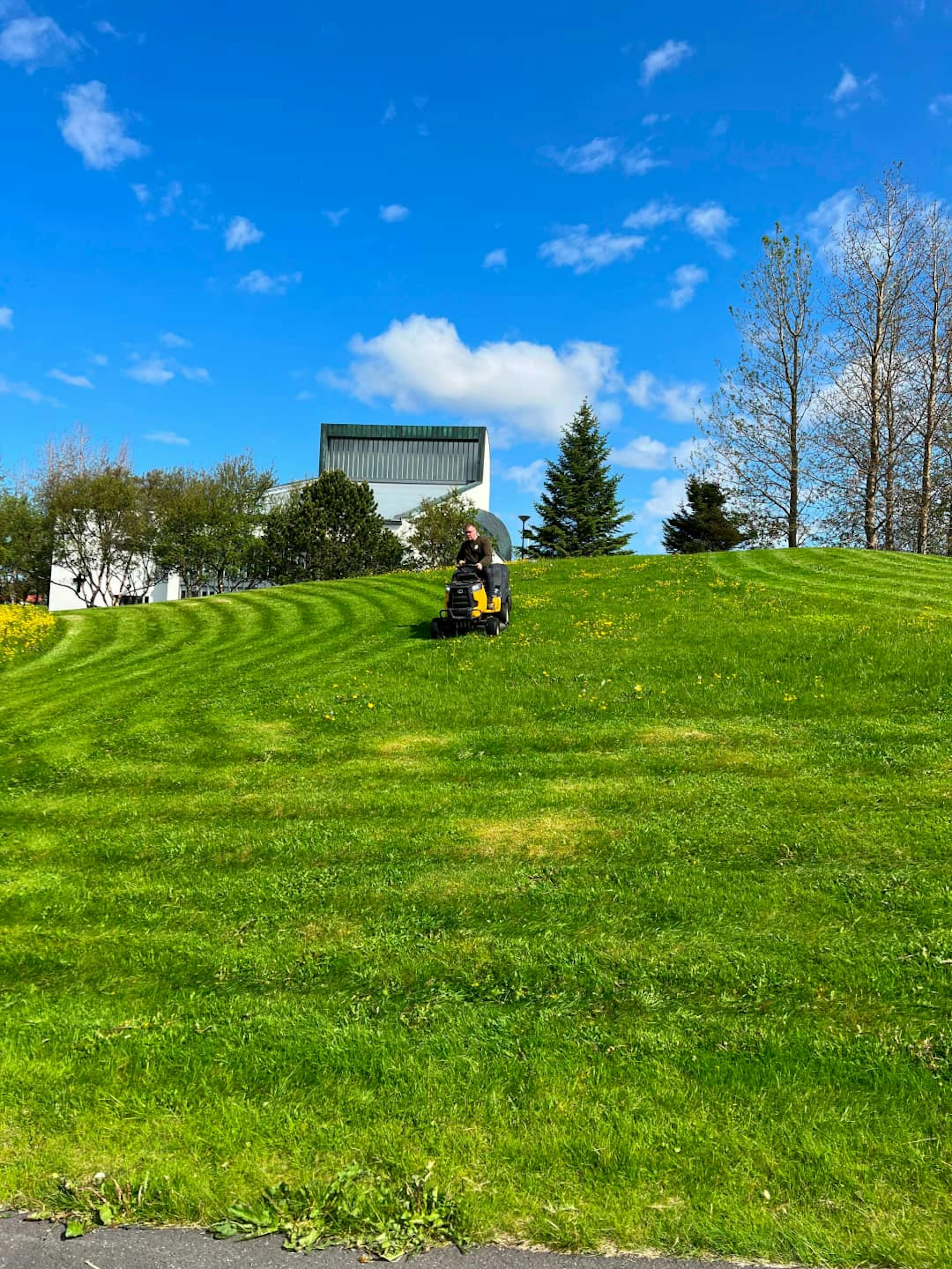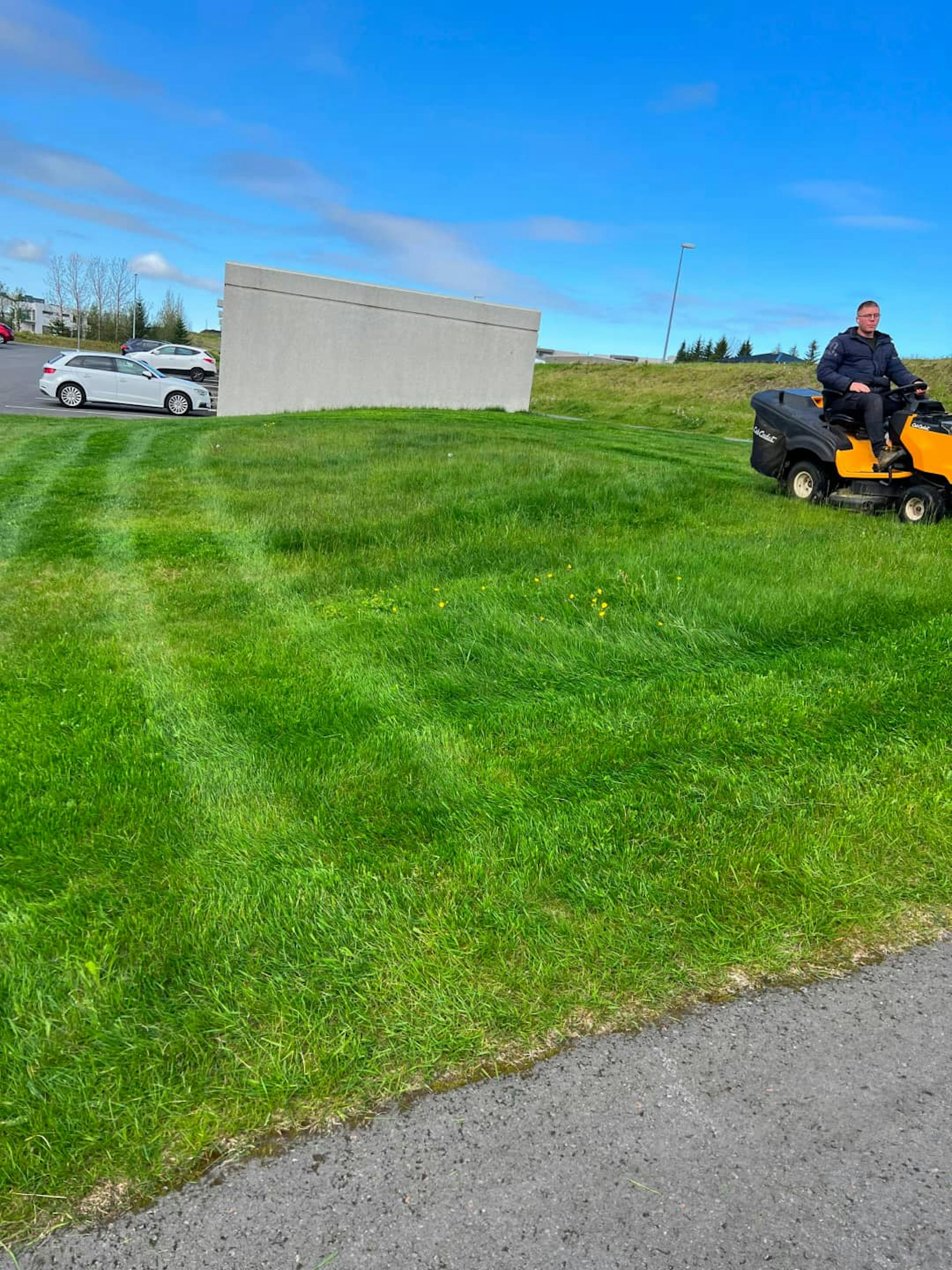 Við skiljum eftir vel snyrtann og fallegan grasflöt eftir hvern slátt.