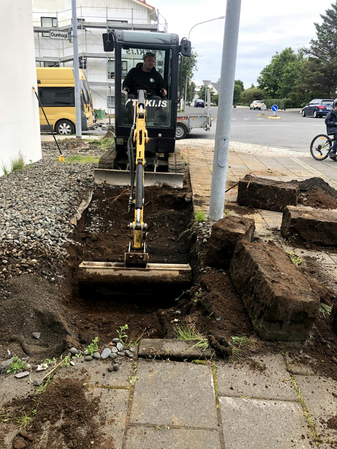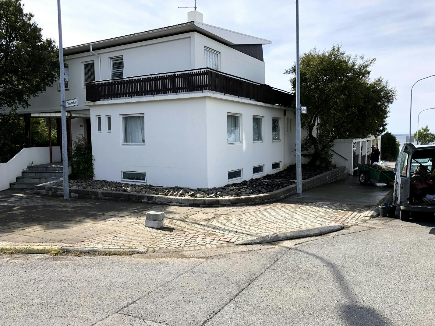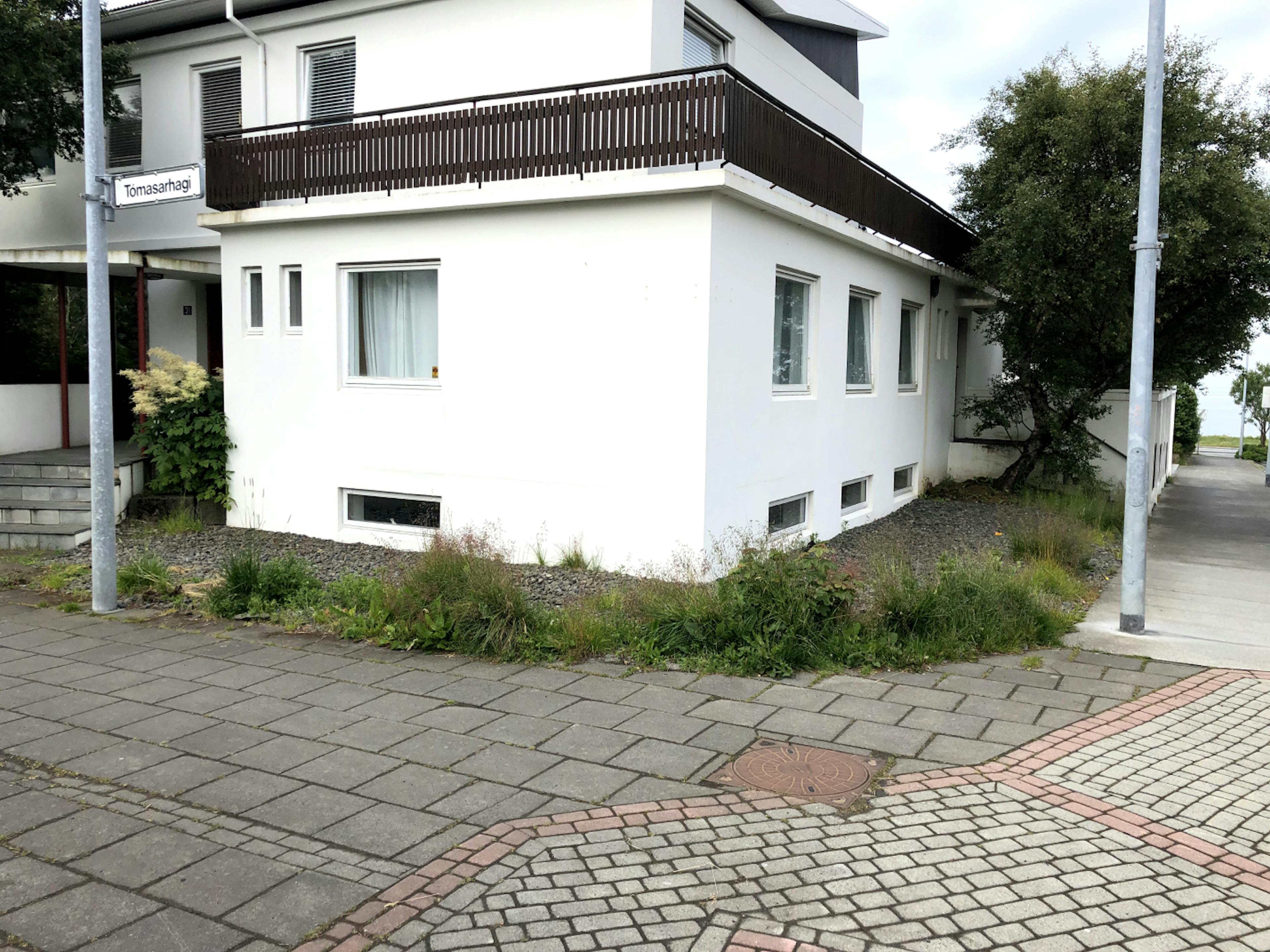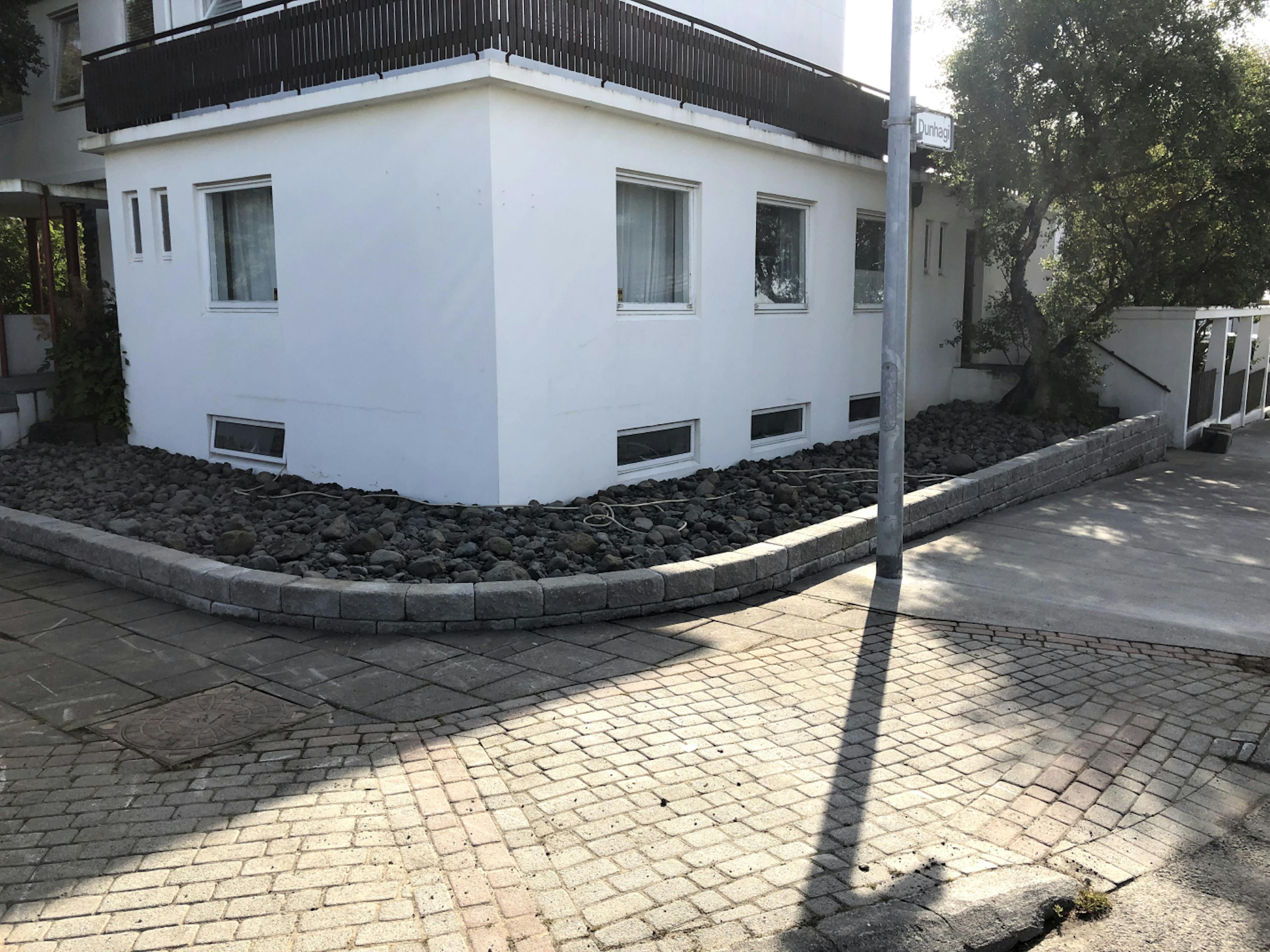 Hér settum við skemmtilega hleðslu fyrir framan þetta fallega hús sem eitt sinn var valið fallegasta hús Reykjavíkurborgar. Húsið er eftir arkitektinn Gísla Halldórsson og yrði líklegast valið fallegasta hús Reykjavíkurborgar aftur eftir þessa nýju viðbót.