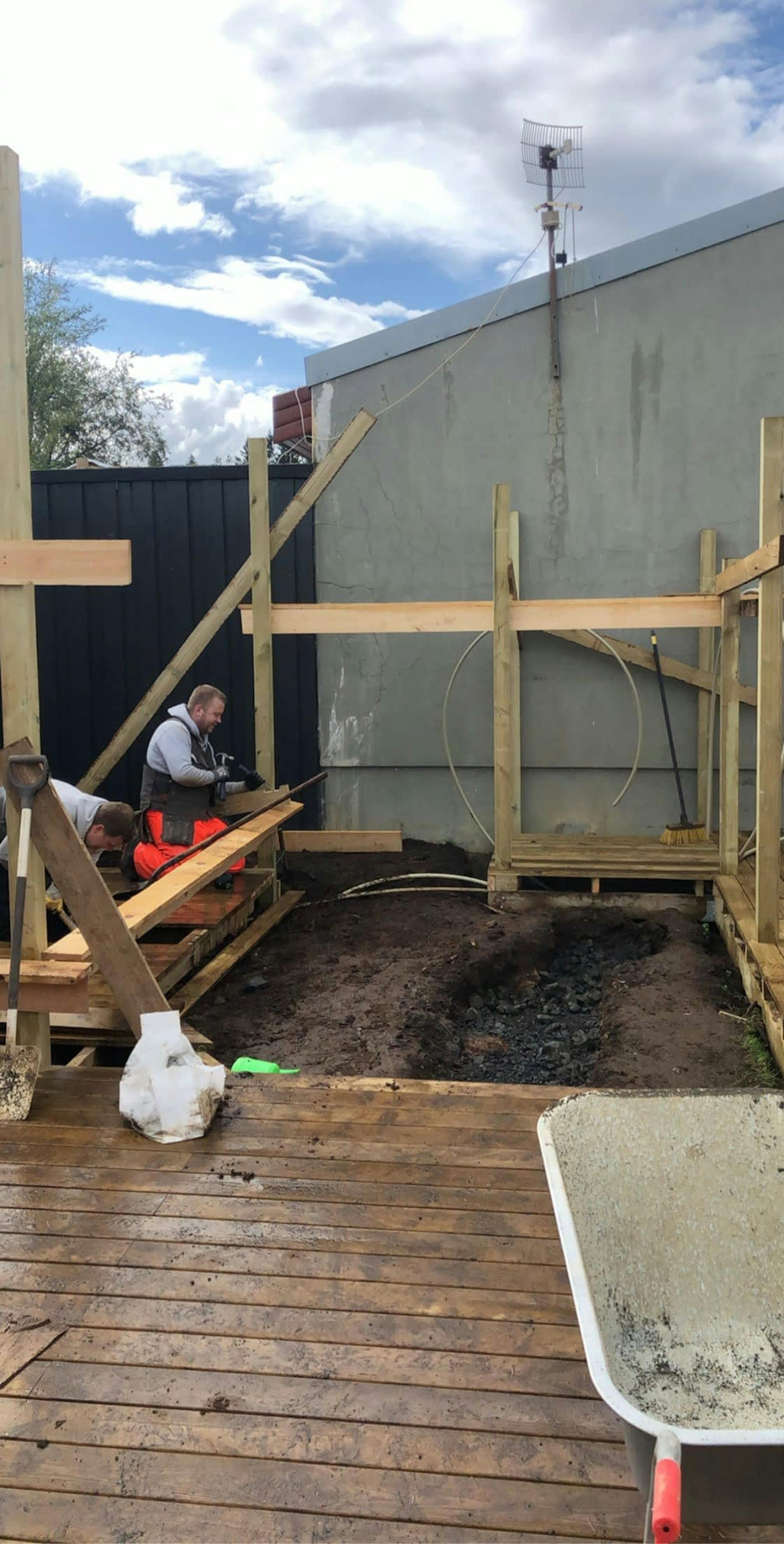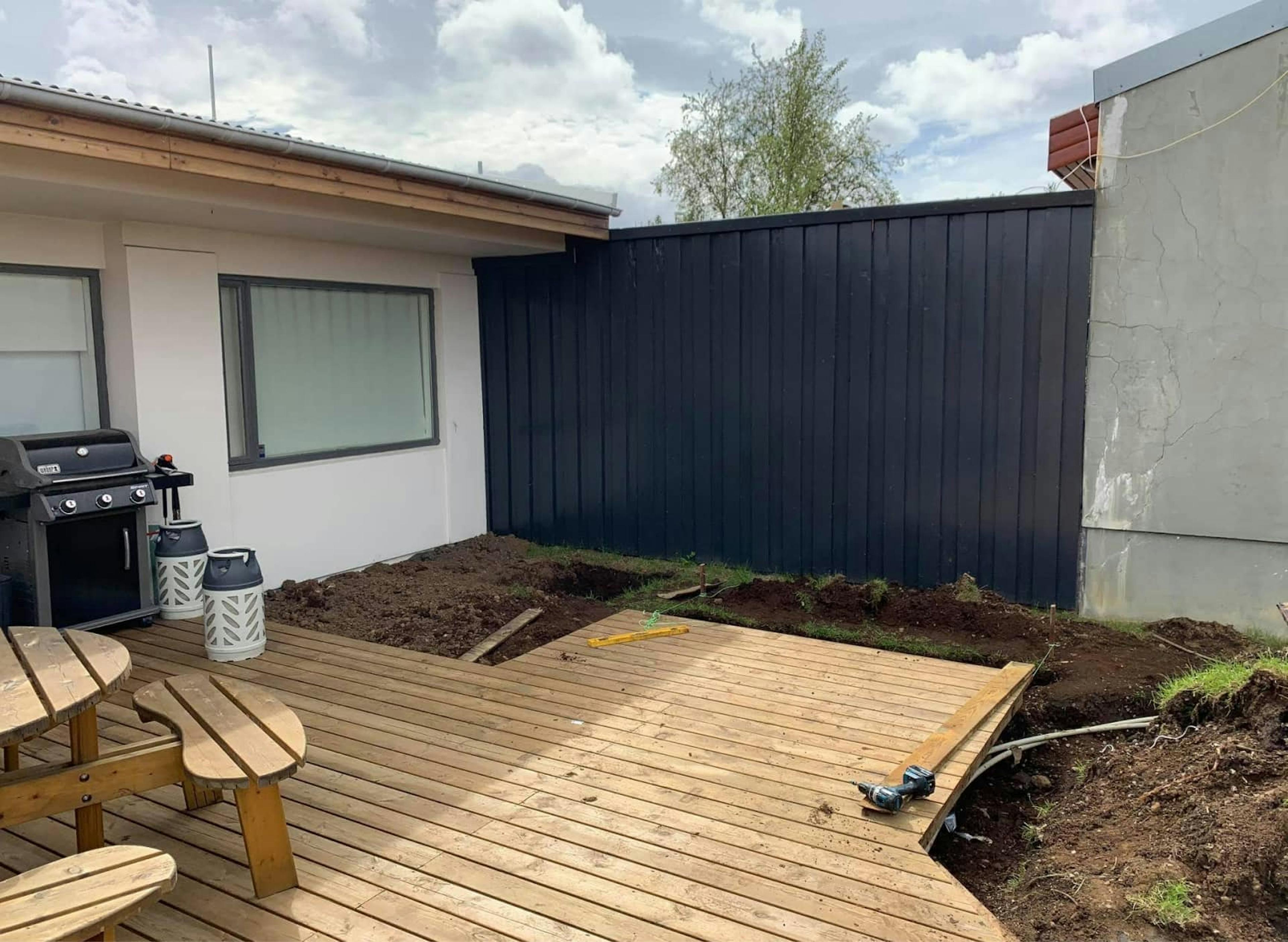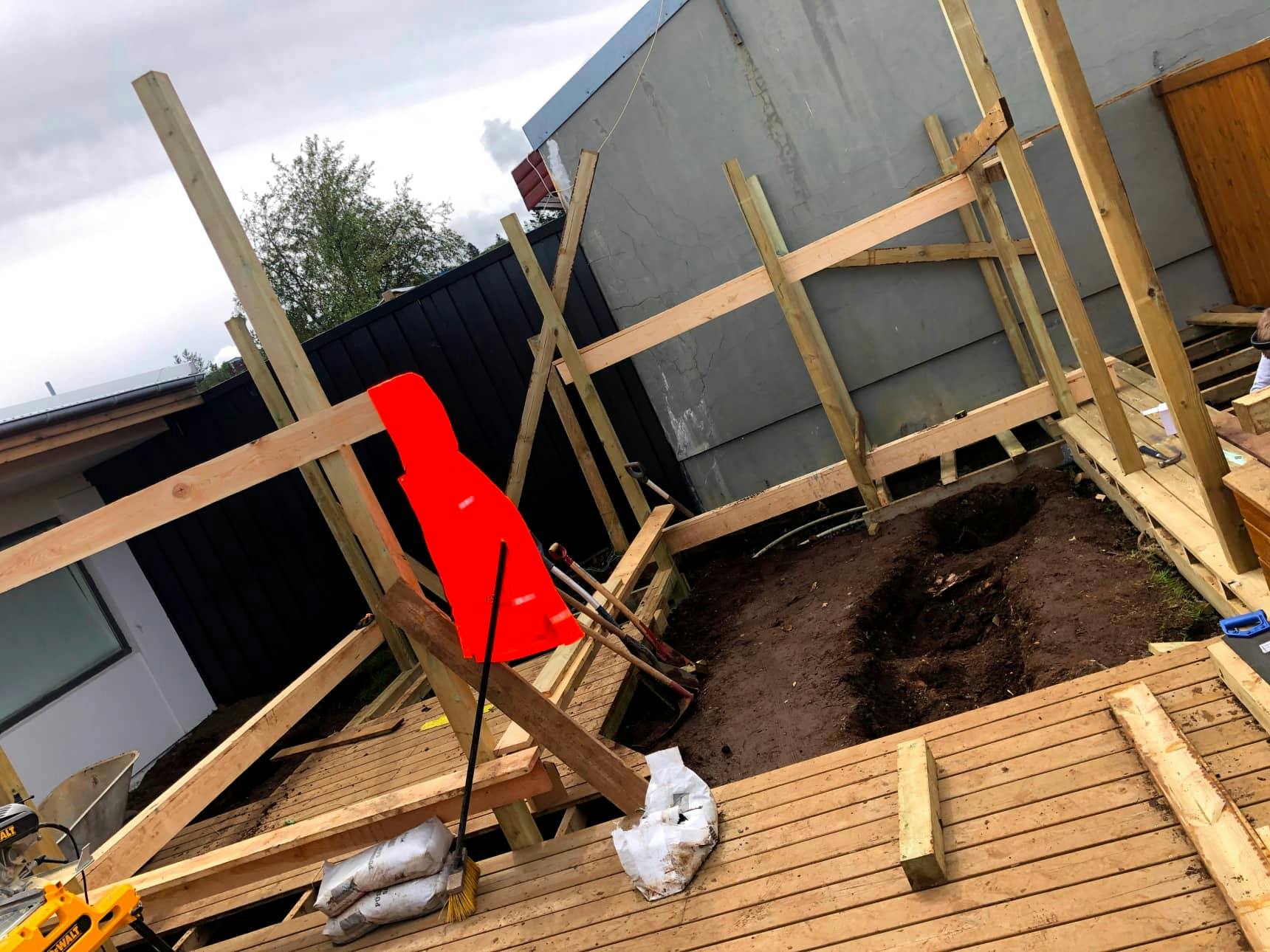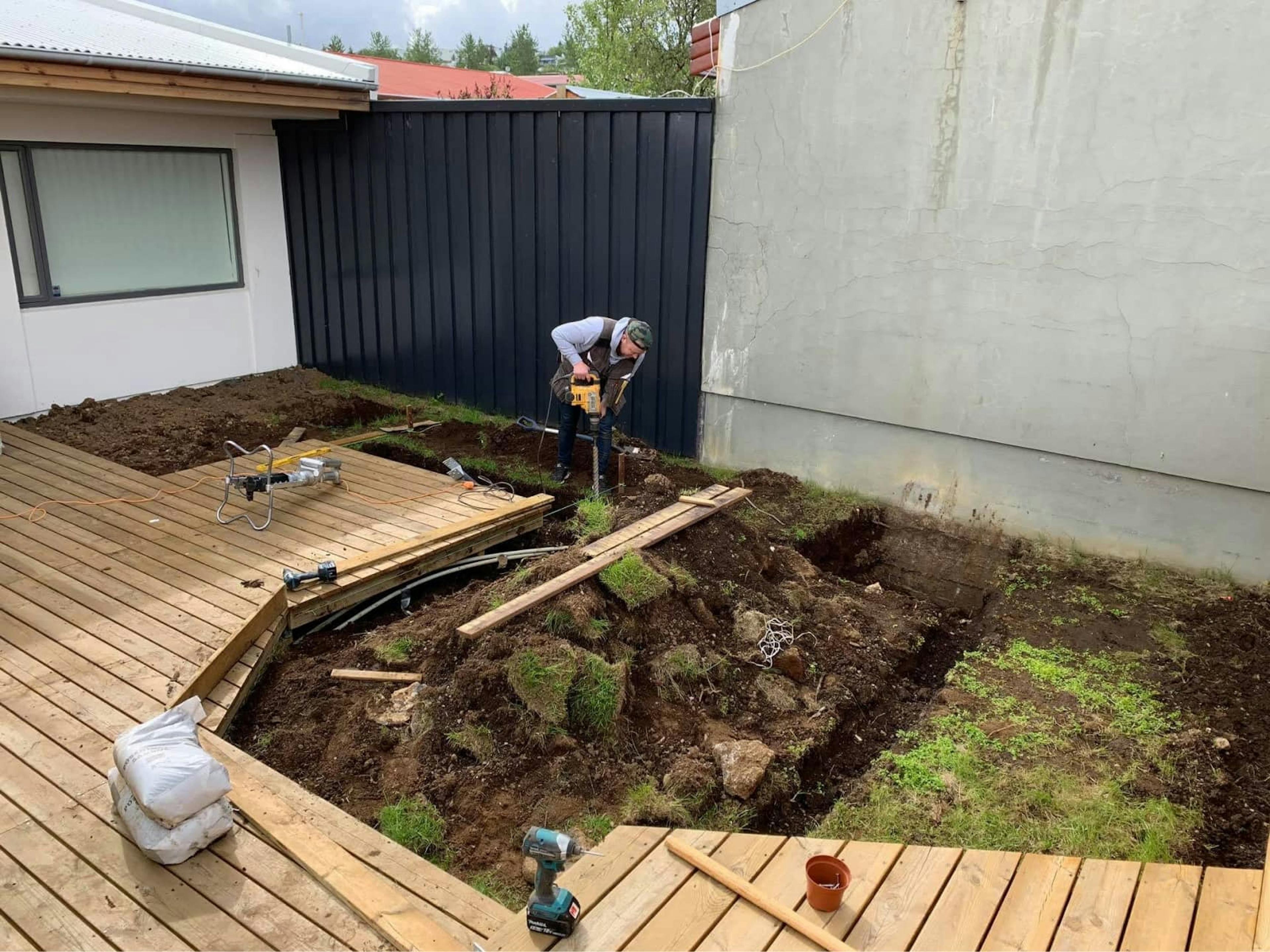 Við stækkuðum pallinn örlítið svo hægt væri að koma góðu borði fyrir. Núna má halda góða grillveislu og bjóða svo öllum í pottinn og sturtu.